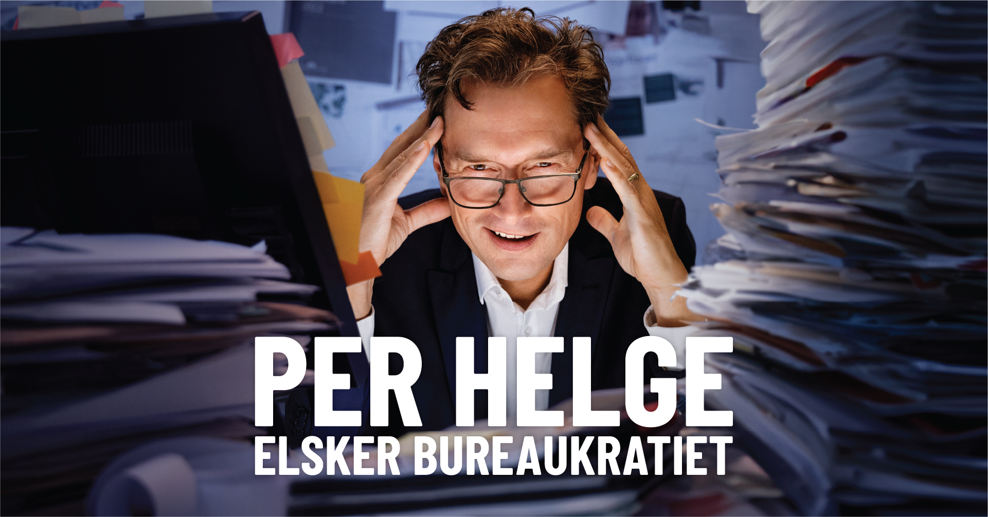 Kampen mod bureaukratiet er i gang. Og alle er enige. NU skal vi af med de idiotiske regler og skemaer… Igen. Men hvis alle er enige om at reglerne skal væk… Hvorfor er de så ikke afskaffet for længst?Per Helge er tilbage med et spritnyt show om kampen mod skemaerne og den ubehagelige sandhed. At der måske et sted sidder en mand… og elsker bureaukratiet?